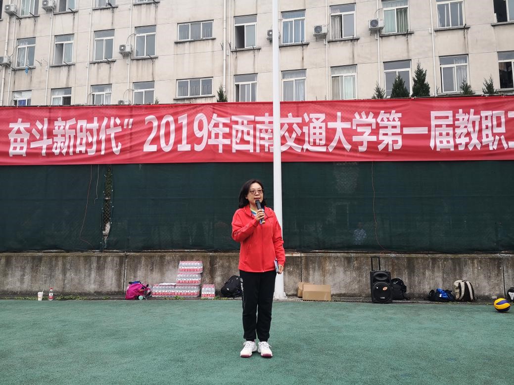 校工会主席郑江发表了讲话,她首先对举办此次活动的排协各位老师和参加此次比赛的全体运动员、裁判员表示了衷心的感谢。同时,郑主席也表示希望通过教职工俱乐部排球联赛,让更多的老师能够热爱排球运动,加强锻炼。让排球作为一种健康的运动方式,成为交大教职工的生活常态。