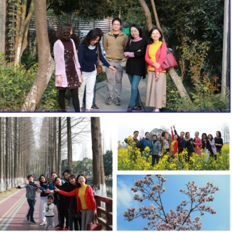 参加活动的教职工从犀浦校区出发,采取步行或骑行等绿色出行方式,伴着河流、草坪、花田、绿道前往蜀绣公园,追逐健康生活,欣赏沿途的海棠花、玉兰花、红叶李树花、含笑花和一望无际油菜花海。走在田埂上、沐在花丛中,老师们感受着被春天包围的感觉,还有阳光洒在身上,舒适惬意。