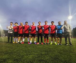 随着时间推进,材料学院足球队一鼓作气再进1球逆转赛场局面。之后再接再厉,继续攻入2球锁定胜局,最终以4:1赢得比赛。本场比赛中由刘拥军、徐轶、崔国栋老师(2球)贡献了4次精彩的进球得分,使材料学院教工足球队获得了第三名的历史最好成绩。