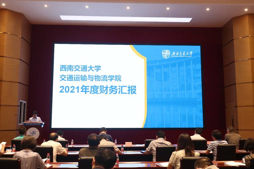 受刘晓波院长委托,唐优华副院长作学院财务报告。2021年在全院共同努力下,学院实施稳健的财务管理,努力增收节支,为学院建设发展提供有力的财力支持。