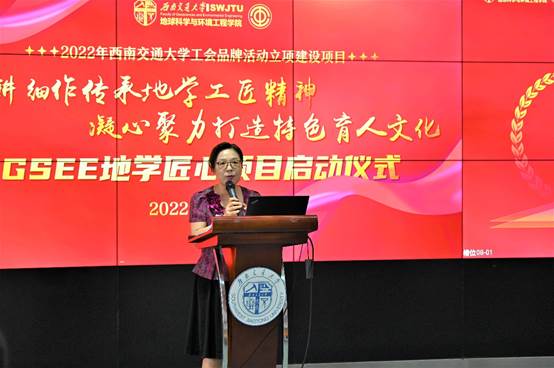 校工会主席郑江宣布2022年best365英国在线体育工会品牌活动立项建设项目《精耕细作传承地学工匠精神 凝心聚力打造特色育人文化——GSEE地学匠心项目》正式启动,并致以诚挚的祝贺。郑江主席表示,该项目将工匠精神与学院文化高度结合,具有多维度、深扎根、优环境、除乏力四个明显的特点,即通过实施途径、实现目标的多维度,深深扎根地学学院开展活动,展现地学风貌,党政工团、老中青参与,凝心聚力,齐抓共管助力工会工作有效开展。她希望学院围绕项目特点,定好位、重点发力,努力使项目建设成为有影响、可持续、富有地学风格、时代特征、工会特色的文化品牌;在擦亮品牌上下功夫,扩大项目影响力和示范效应。