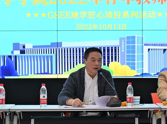 为迎接党的二十大胜利召开,深入贯彻学校第十五次党代会精神,增进地学学院教职工的认同感与归属感,凝聚奋进力量,建功新时代,10月13日下午,地学学院顺利举办GSEE地学匠心项目系列活动之青年教师座谈会,出席本次活动的有学院党委书记关秦川,执行院长刘国祥,党委副书记、副院长许军华,党委副书记和纪委书记傅尤刚,副院长张玉春、赵晓彦、朱军,院长助理曹云刚等党政领导,院工会主席蔡红波等学院工会委员,学院各科室主任,及各系青年教师。