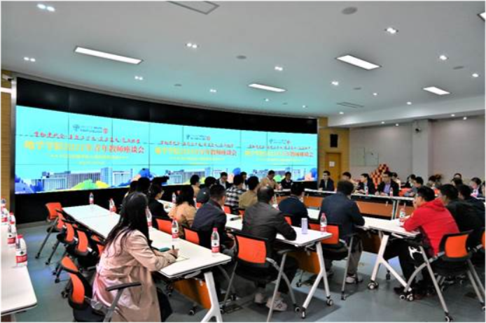 2022年青年教师座谈会于下午3点在XP4243举行,学院党委副书记、副院长许军华主持会议,现场一同观看了2018-2022年入职教师介绍视频。