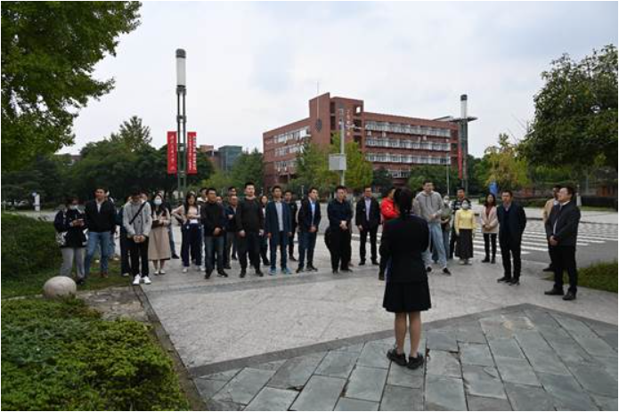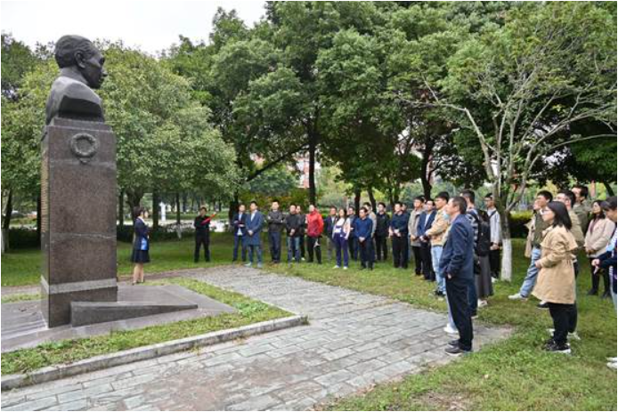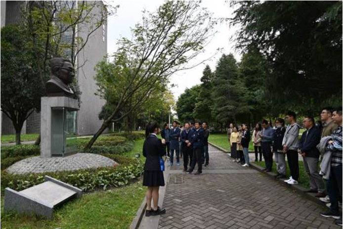 座谈会正式开始前,参会人员在学校南大门前集合,由best365英国在线体育校园大使团成员张禹淇带领老师们走中轴线,重温学校126年办学历程,领略大师风采。从南大门到“竢实扬华”墙再到四号教学楼,从标志性建筑到杰出人物塑像,从学校历史发展到精神内核培育,讲述了“竢实扬华,自强不息”的交大精神、“精勤求学,敦笃励志,果毅力行,忠恕任事”的交大校训、“严谨治学,严格要求”的优秀传统,展现出学校教师风清气正、一心为国的高尚品质,对在场青年教师产生积极深远的教育意义。