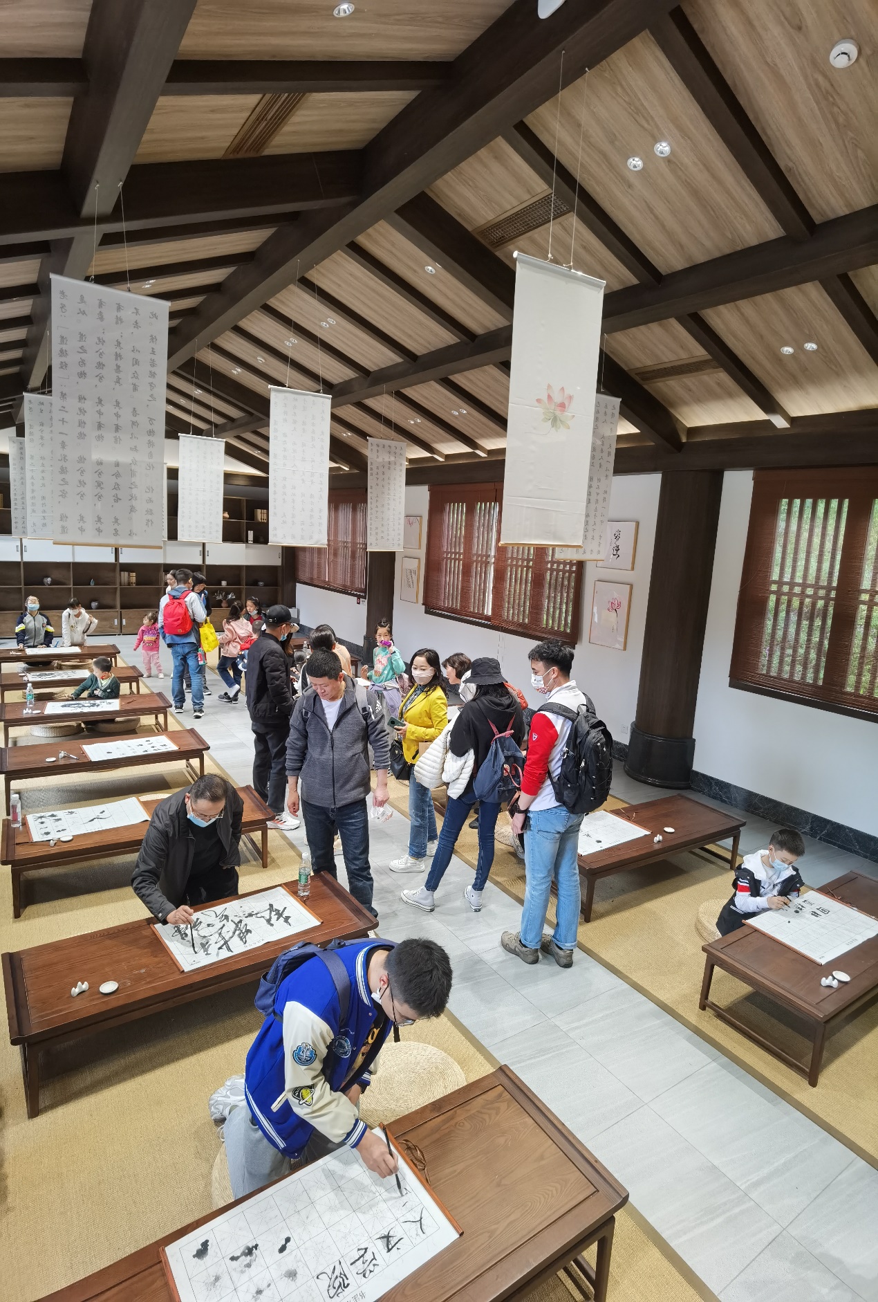 在养生文化体验地——北纬30度采气场,音乐系刘飞云老师、丁旭阳老师带领大家饶有兴趣地感受了奇妙的“行气吐纳”。浑厚壮美的歌声伴着林下清风,久久回荡。大家不禁为古人的博大胸襟、高超智慧所感染。
