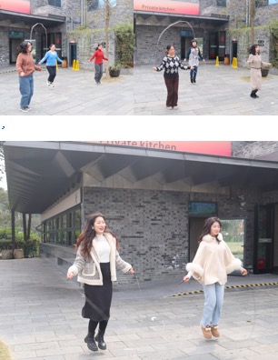 随后,活动进入了另一个高潮——各种健身活动的开展,包括踢毽子、跳绳、打羽毛球等,在青杠树景区河边绿道旁,一边欣赏香草湖湿地公园和柏条河的秀丽风光,感受自然之美,一边开展健身活动,不仅增进了身体健康,也增强了团队之间的凝聚力。