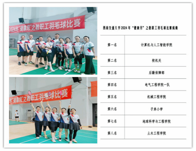 11月11日下午,学校“健康月”之教职工羽毛球比赛在犀浦校区飞碟体育馆拉开帷幕,本届学校教职工羽毛球比赛历时三天,共有29支代表队参赛。本次羽毛球角逐中在比赛中队员们勇于展现、攻坚克难、团结奋进,将后勤人勇于争先本色表现得淋漓尽致充分展示了“艰苦奋斗、主动担当”的后勤人精神,最终取得获得了第三名的好成绩。