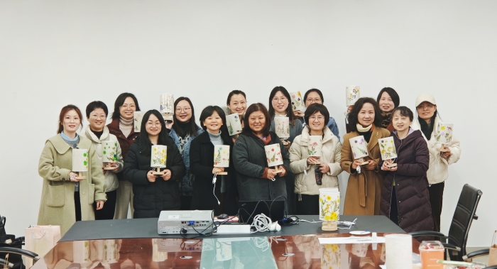 活动现场气氛热烈,欢声笑语不断。大家互相交流制作心得,分享创作灵感,在轻松愉快的氛围中感受着艺术的魅力。经过一个多小时的精心制作,一盏盏独具匠心、精美别致的压花灯陆续完成。柔和的灯光透过压花灯罩,映照出五彩斑斓的光影,仿佛将春天的气息带入了室内,令人心旷神怡。